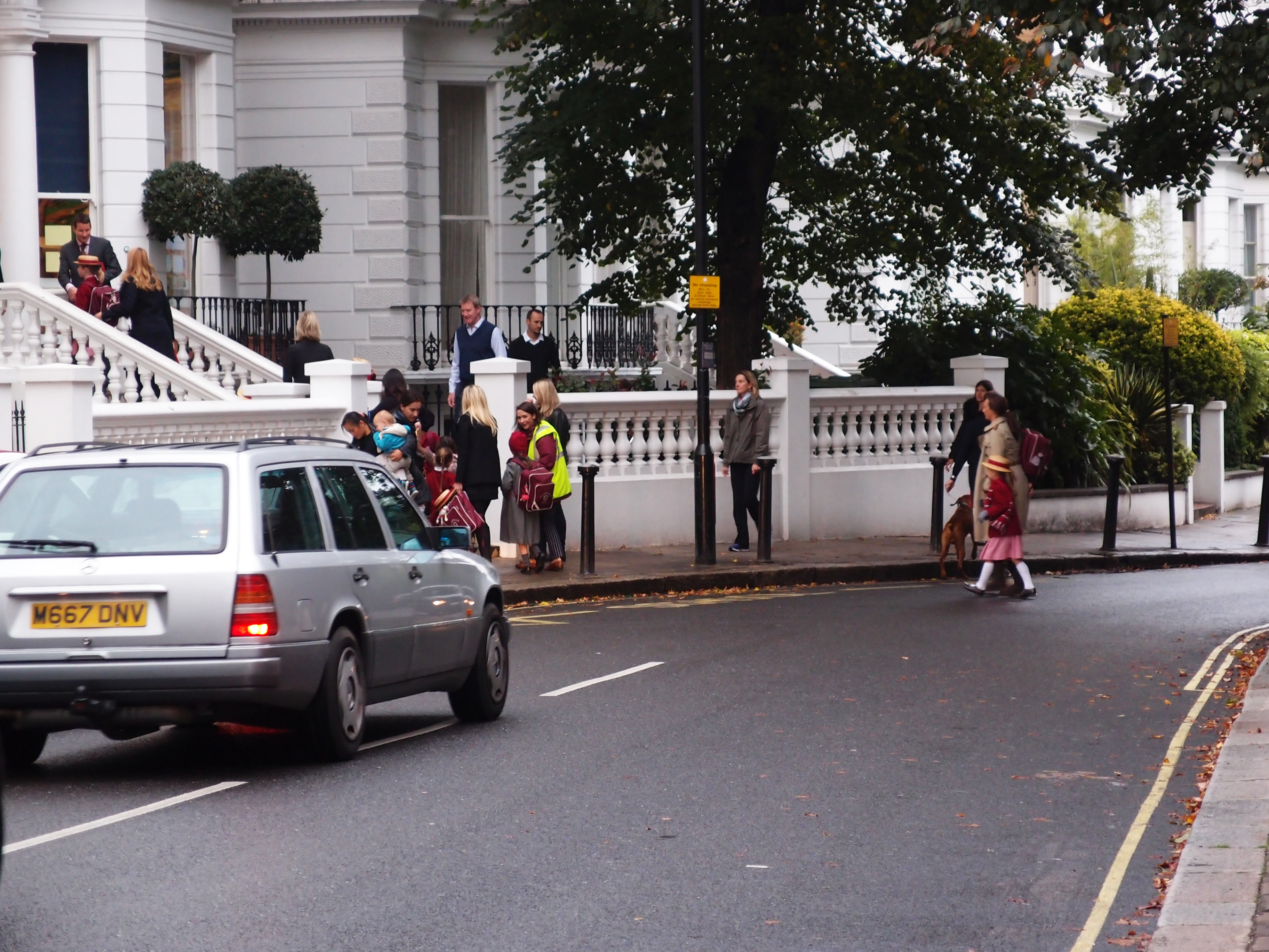 Aamuisin hotellimme ohi kulki punaisiin takkeihin ja olkihattuihin pukeutuneita tyttöjä. Tytöt olivat matkalla Pembridge Hall Schooliin, joka on erittäin suosittu tyttökoulu Notting Hillissä. Koulu saavutti suuren suosion vuonna 2009, jolloin Claudia Schifferin tytär, Clementine, aloitti koulunsa siellä. Lapsi ilmoitetaan kouluun heti syntymänsä jälkeen ja luokalle otetaan viisi lasta jokaiselta kalenterikuukaudelta, jotta syntymäpäiviä on tasaisesti ympäri vuoden. Säkkipilli soi aamuisin koulun portailla ja oppilaat kätellään kouluun tullessa. Ja luonnollisesti jokainen lapsi tuodaan kouluun, joko vanhemman tai nannyn toimesta. Loisteliasta!