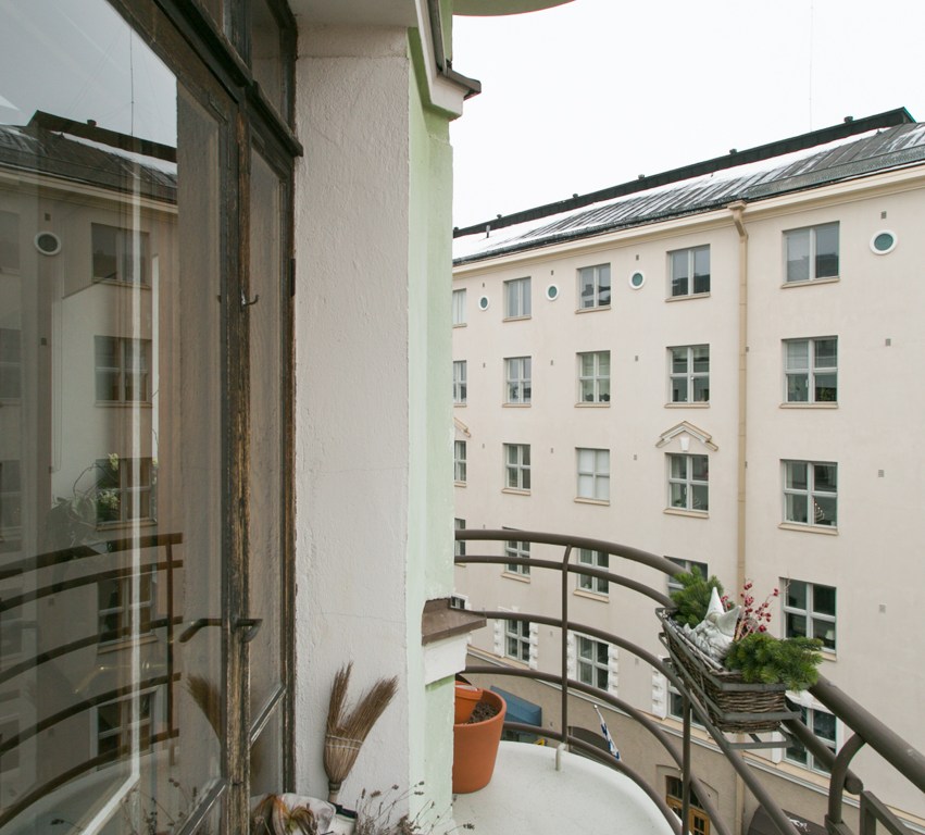 Olimme useasti ihastelleet taloa. Eräänä päivänä mieheni huomasi, että talossa on Vironkadun puolella nelännessä kerroksessa asunto myynnissä. Kävimme katsomassa asuntoa ja totta kai se oli huonossa kunnossa. Oli haikeaa luopuoa kivasta asunnostamme Meritullinkadulla, mutta haaveena oli pitkään ollut funkkis-talo ja nyt se oli saatavilla. Oli siis tiedossa remonttia, remonttia ja vielä kerran remonttia. Kolmas suuri remontti, jonka elämäni aikana olen tehnyt. Aikaisemmista remonteista poiketen, nyt kintereillä pyöri kaksi pientä lasta, joten arvata saattaa, että tuolloin alkoi remonttikiintiö olla täynnä.