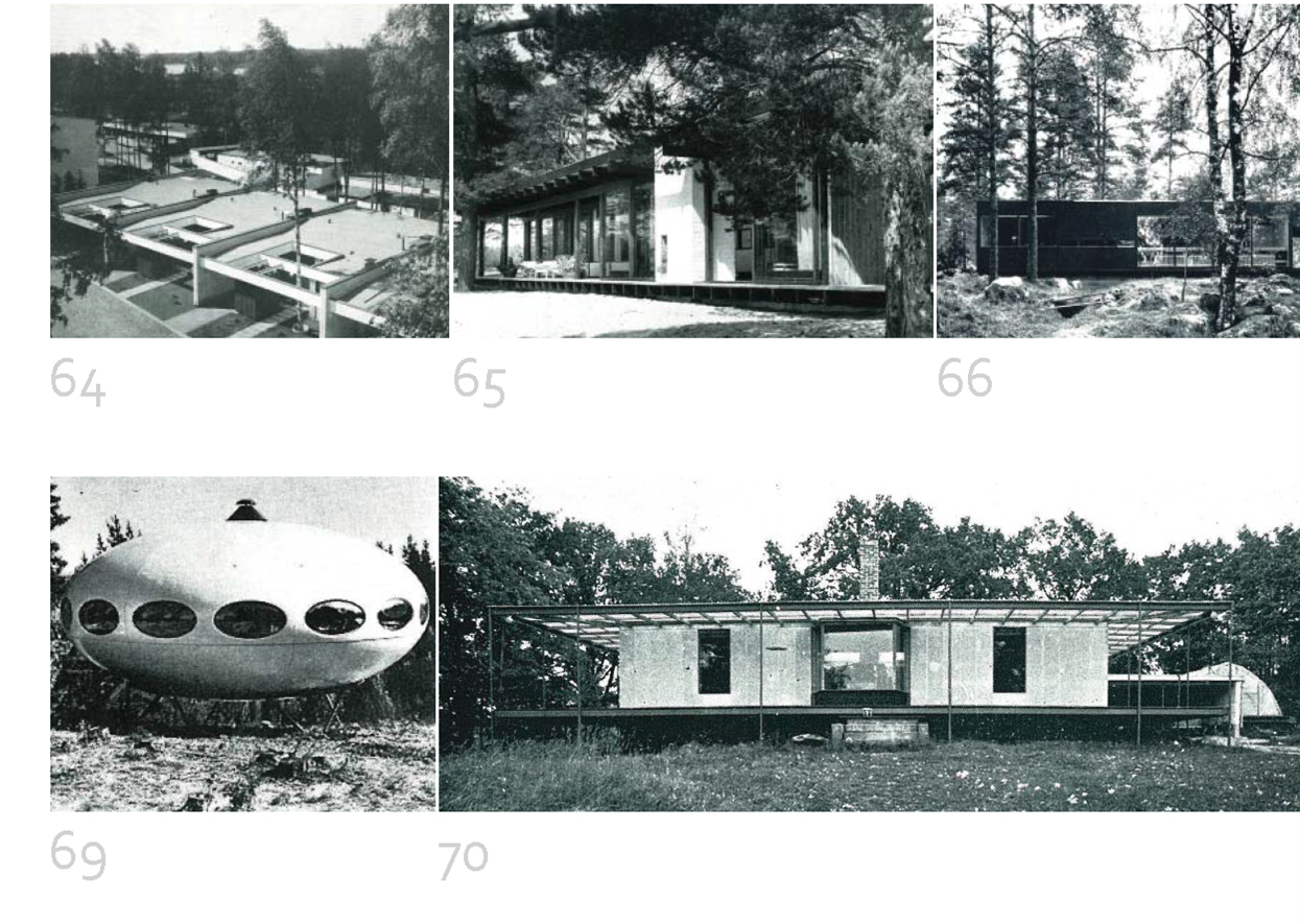 1960-luvun lopulla kehitettiin useita standardoituihin rakennusosiin perustuvia elementtijärjestelmiä, mm. Kuten Haluatte -järjestelmä (ns. Bungalow-talo, suunnittelijoina Juhani Vainio ja Pentti Lehtinen), Domino-järjestelmä (Erkki Jatila & Eero Valjakka) ja Aarno Ruusuvuoren suunnittelema ”Marimekko-talo”. Oheisessa kuvassa on Sakari Ruotsalaisen diplomityöstä kaapattu kuva, johon hän on kerännyt Arkkitehti-lehdestä aikajärjestyksessä pientaloja ja kesäasuntoja.