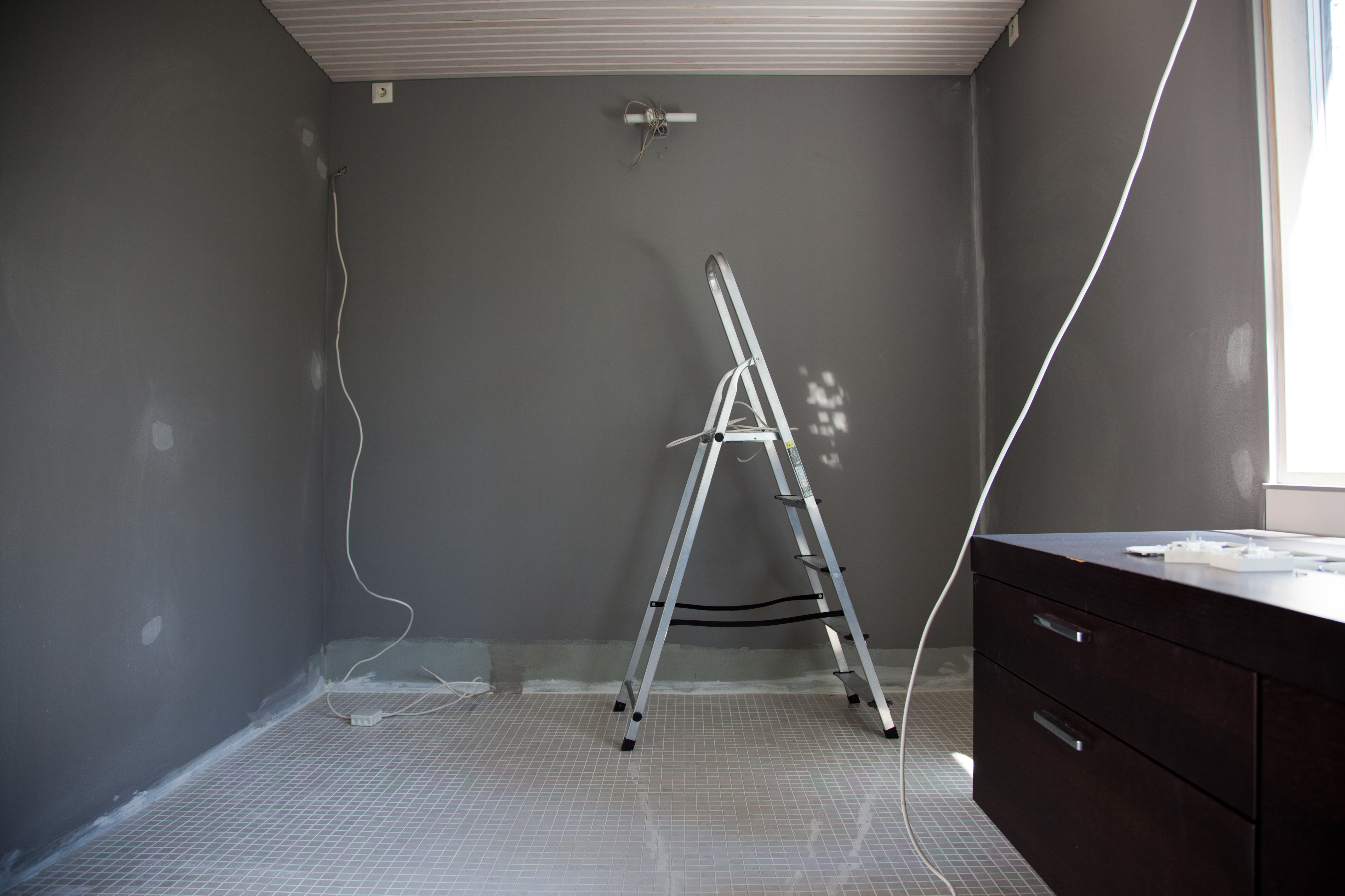 Makuuhuone oli kurjassa kunnossa. Eniten ihmetytti kuitenkin pukeutumistila, josta oli viety kaksi vaatekaappia. Myyntiesitteesä mainittiin, että kalusteet ovat tummaa puuta (monikossa), mutta jäljellä oli ainoastaan yksi tumma kaluste. Lisäksi pukeutumistilan seinät oli maalattu puutteellisesti ja sähköjohdot roikkuivat seinillä.