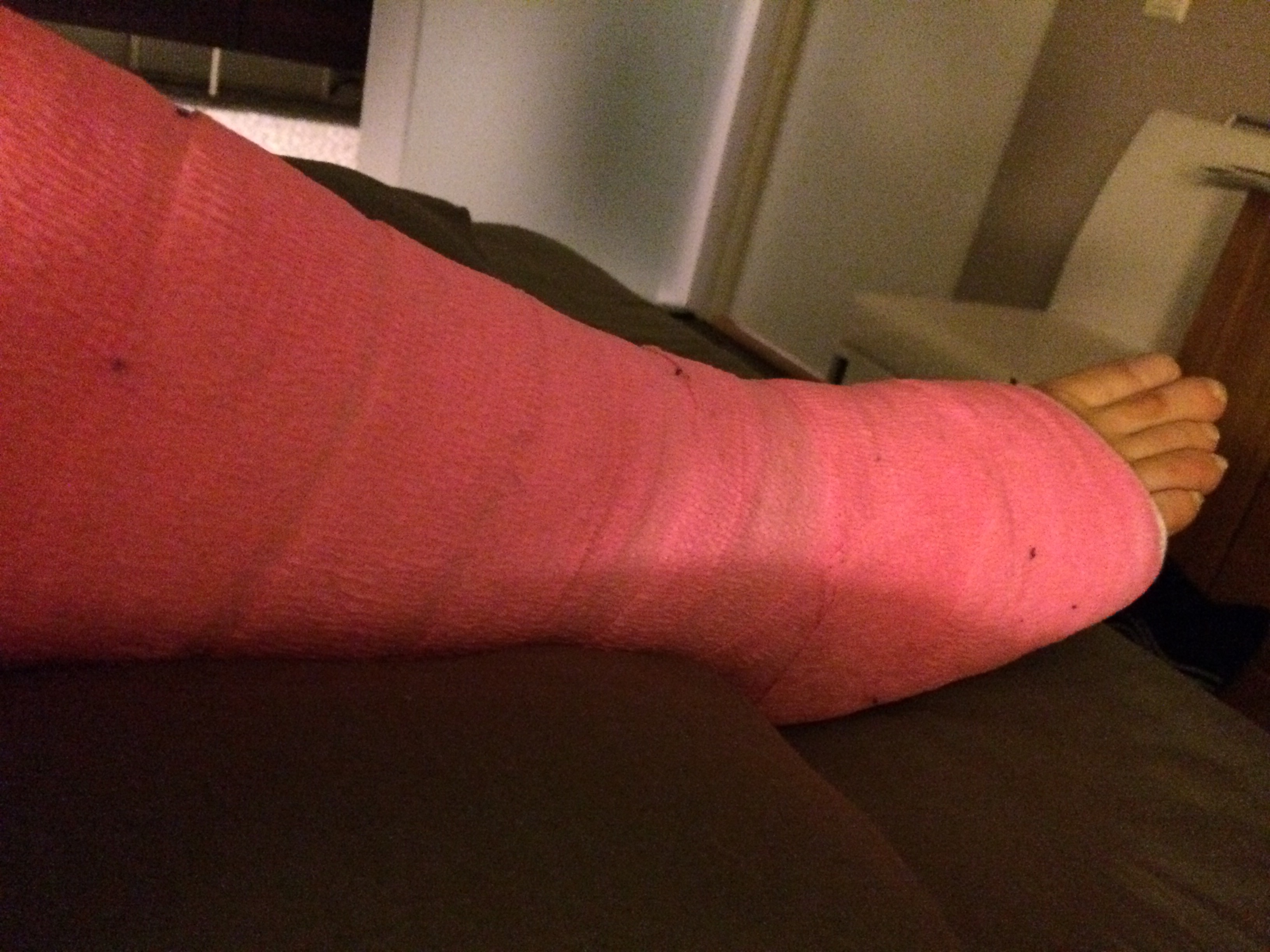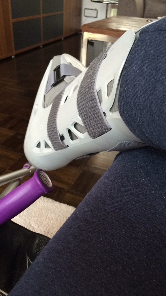Kipsiä pidetään yleensä neljä viikkoa. Jalan päälle ei saa varata ja jalkaa kannattaa pitää mahdollisimman paljon vaakatasossa esim. tyynyn päällä. Suihkussa käynti on hankalaa, sillä kipsi ei saa kastua ja keppien kanssa suihkussa pyöriminen on melkoisen hankalaa jopa vaarallista. Onneksi sain töistä apuvälineitä käyttööni. Suosittelen erityisesti suihkupyörätuolin lainaamista esim. kunnan apuvälinelainaamosta.