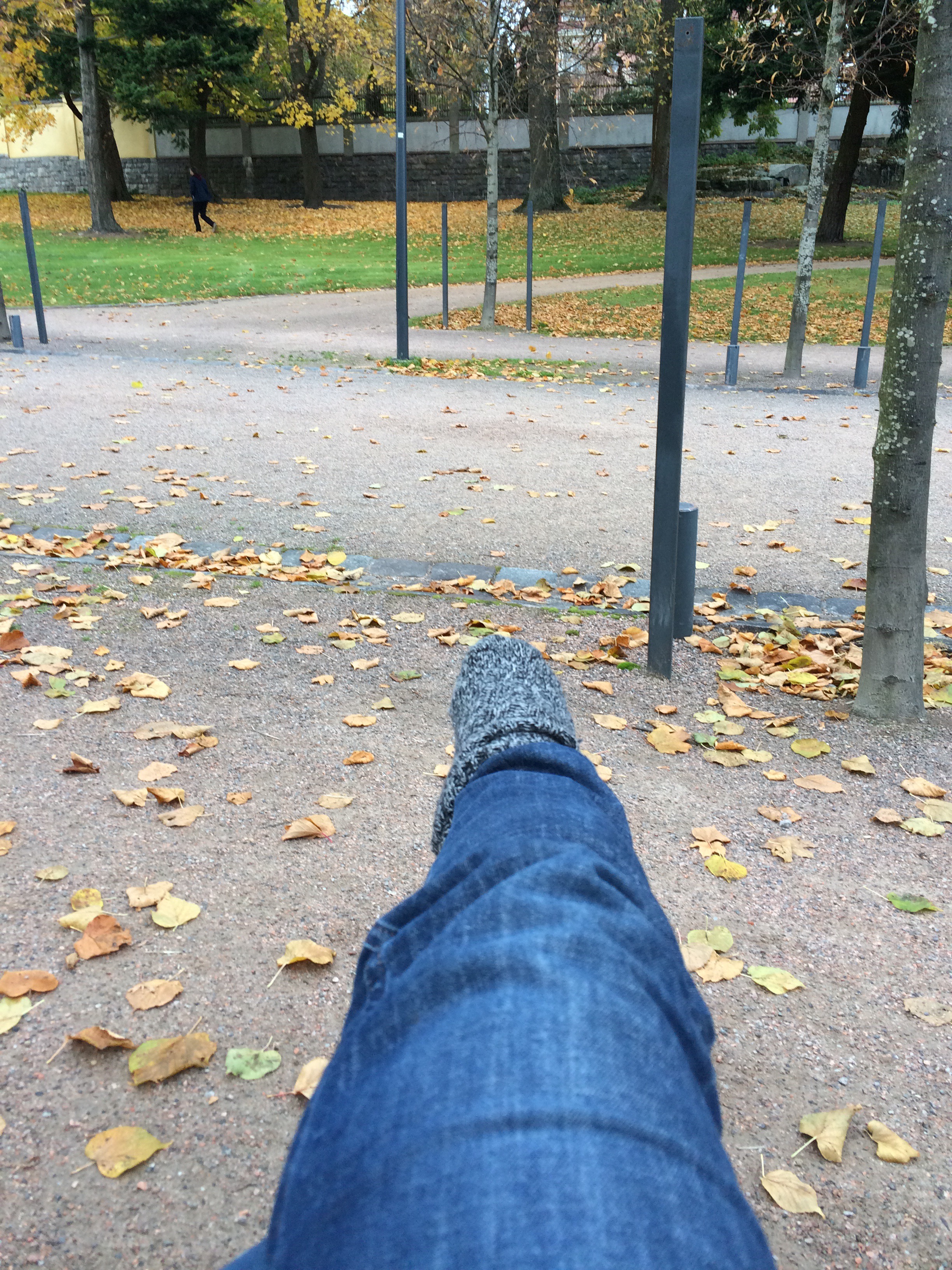 Liikkua kannattaa vaikka jalka on kipsattu. Kävelin päivittäin pienen lenkin, jotta pääsin ulos neljän seinän sisältä. Ikimuistoinen on myös Henri Cartier-Pressonin näyttelyyn tutustuminen pyörätuolissa. Alla kuva kipsatusta jalasta kävelylenkillä ja tottahan toki Reean piti myös testata pyörätuoli.