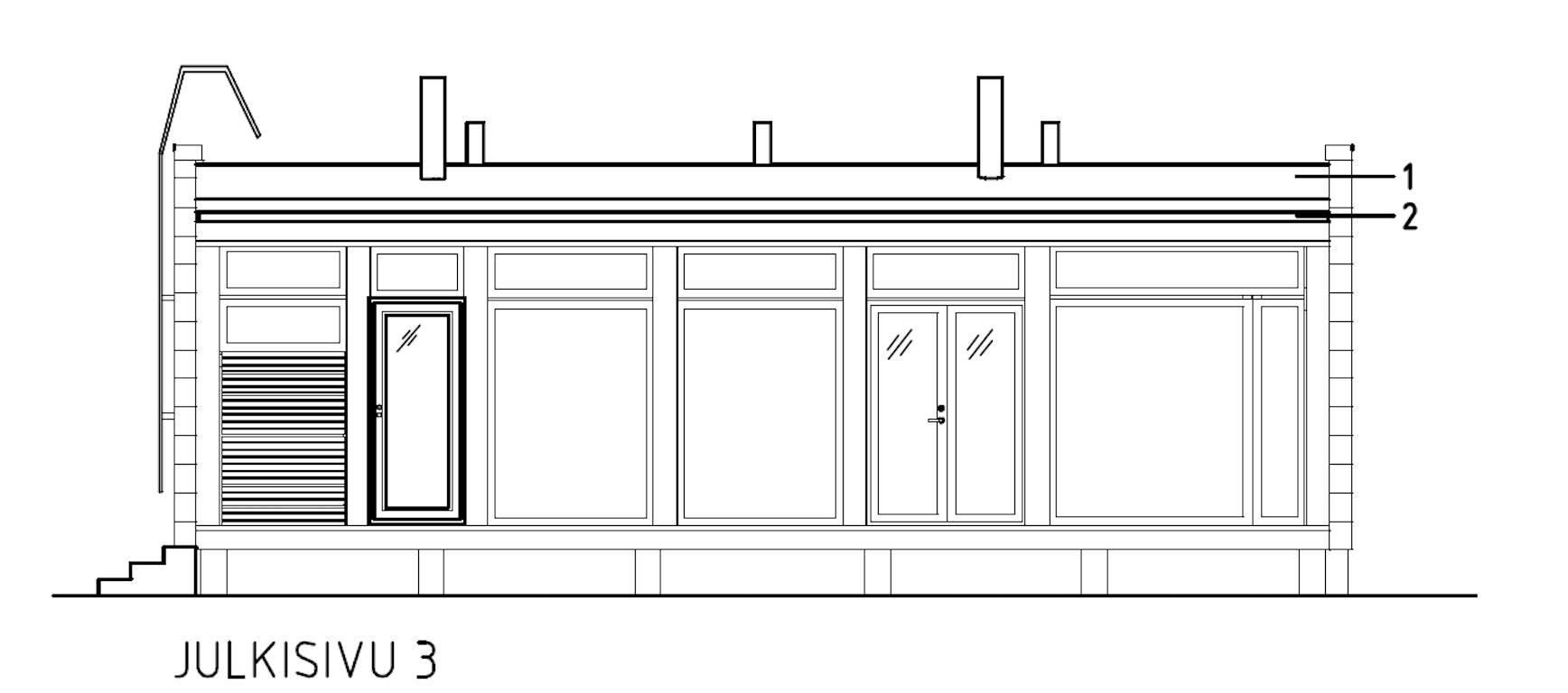 Julkisivu 3 on länteen järvelle päin ja kaikki seinät, paitsi saunan seinä ovat lasia. Huvilamme kummatkin makuuhuoneet on samankokoiset kuin Nurmijärvellä olevassa Glass Housessa. Lisäksi liukuovien väritys on sama kuin oheisessa kuvassa.