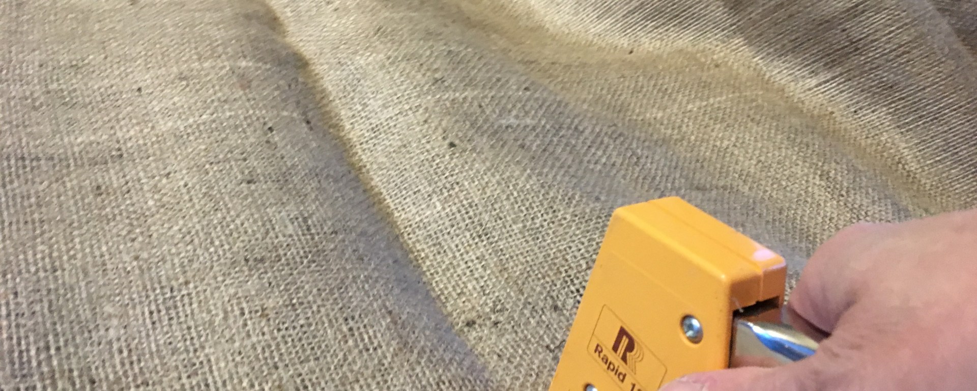 Kun olin saanut satulavyöt ja jouset asennettua sohvaan, seuraavaksi vuorossa oli pohjakankaan kiinnittäminen.