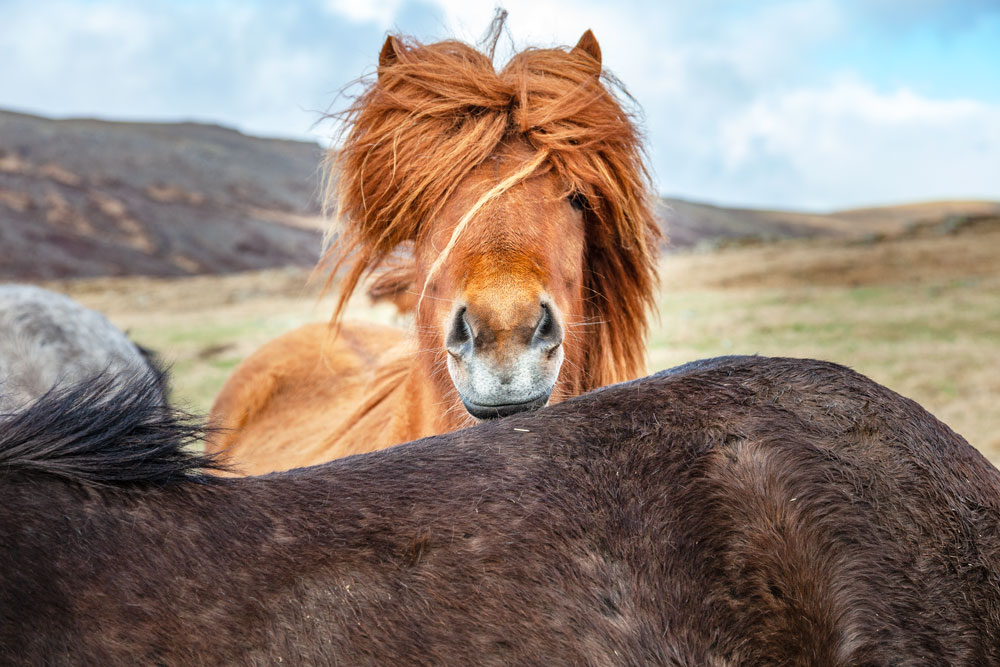 Olin koko matkan aikana etsinyt hevoslaumaa kuvattavaksi, mutta joko hevoset olivat liian kaukana tai satoi vettä. Viimeisenä päivänä ajoimme keskellä maaseutua, kun näin tien vieressä lauman islanninhevosia.