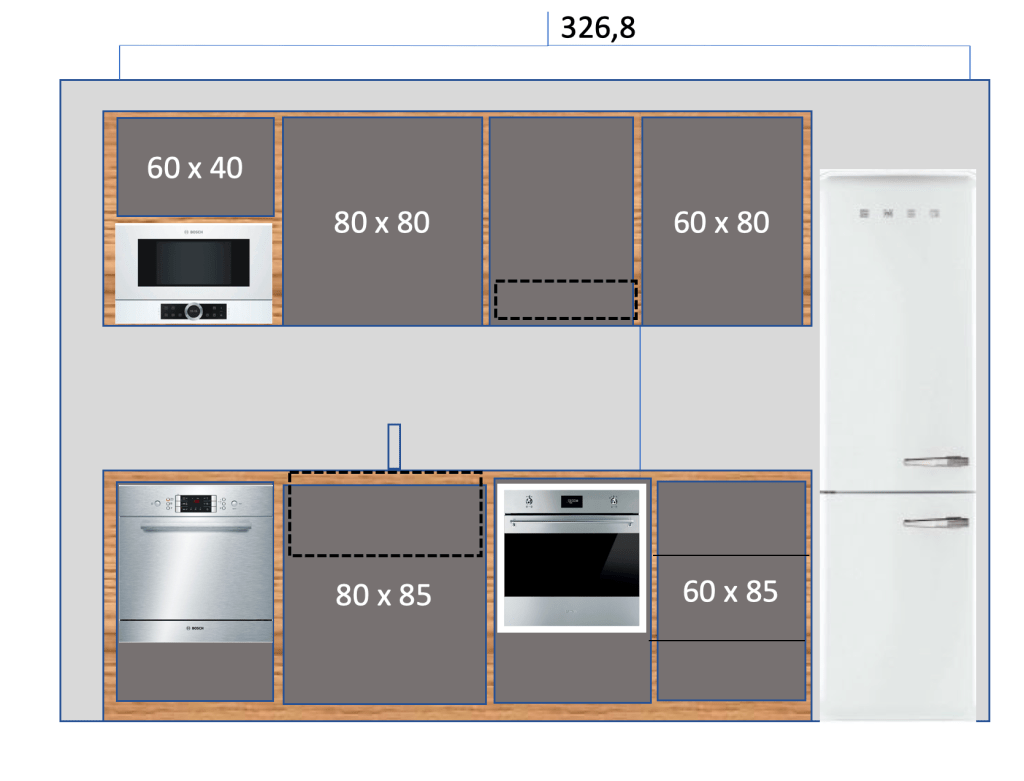 Mikkelin asuntomessuilla (kesä 2017) keittiöt olivat valtaosin mustia. Asuntomessuista inspiroituneena tein suunnitelman, jossa keittiökalusteiden ovet ja laatikoston etulevyt ovat tumman harmaat, runko tammea / vaaleaa puuta. Lisäksi himoitsin Smegin jääkaappipakastinta.