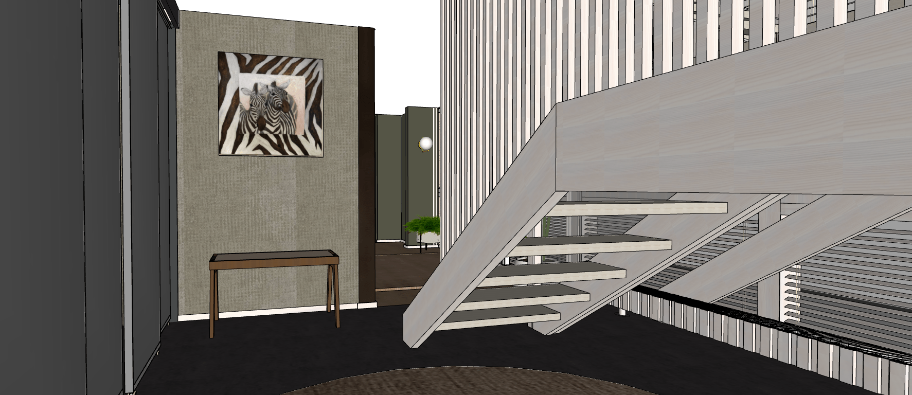 Eteisen ja käytävän 3D-mallinnoskuvia
