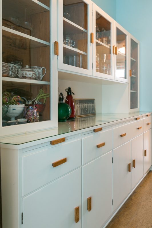 Keittiökaappien tyyli kopioitiin alkuperäisestä 30-luvun kaapista