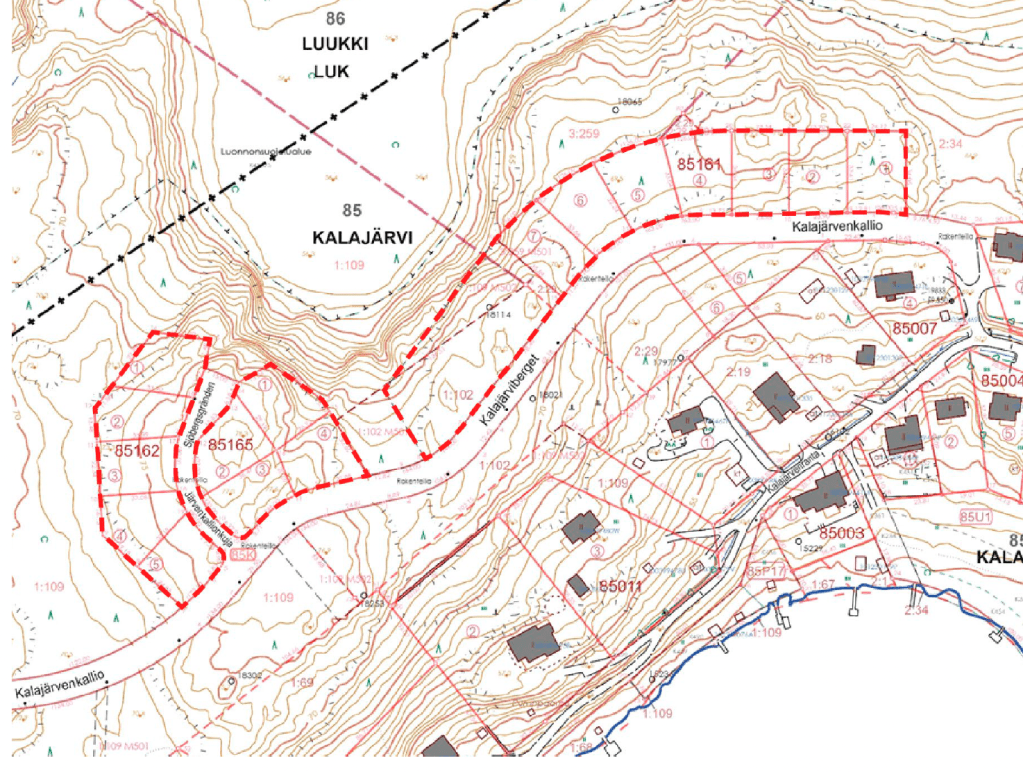 Kahden valintatilaisuuden jälkeen tontteja oli kuitenkin jäljellä 8, joista 5 sijaitsi Kalajärvellä! Kävimme tutkailemassa tarkemmin jäljellä olevia tontteja ja ehdoton suosikkimme oli korttelissa 85612 sijaitseva rinnetontti.