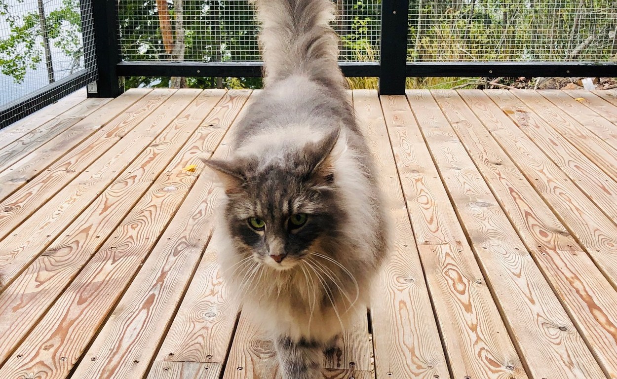 Ensimmäinen kontaktini Norjalaiseen metsäkissaan on noin 12 vuoden takaa, jolloin kävin Myyrhallissa eläinnäyttelyssä. Ihastuin suureen, rohkeaan ja ihmisrakkaaseen kissaan, joka käveli valjaissa näyttelytilan lattialla. Perheen pienet lapset kieppuivat kissan ympärillä ja kissa ei ollut siitä moksiskaan. Kissan omistaja kertoi myös, että kissan lempipuuhia on hattuhyllyltä ihmisten päiden pyydystäminen.