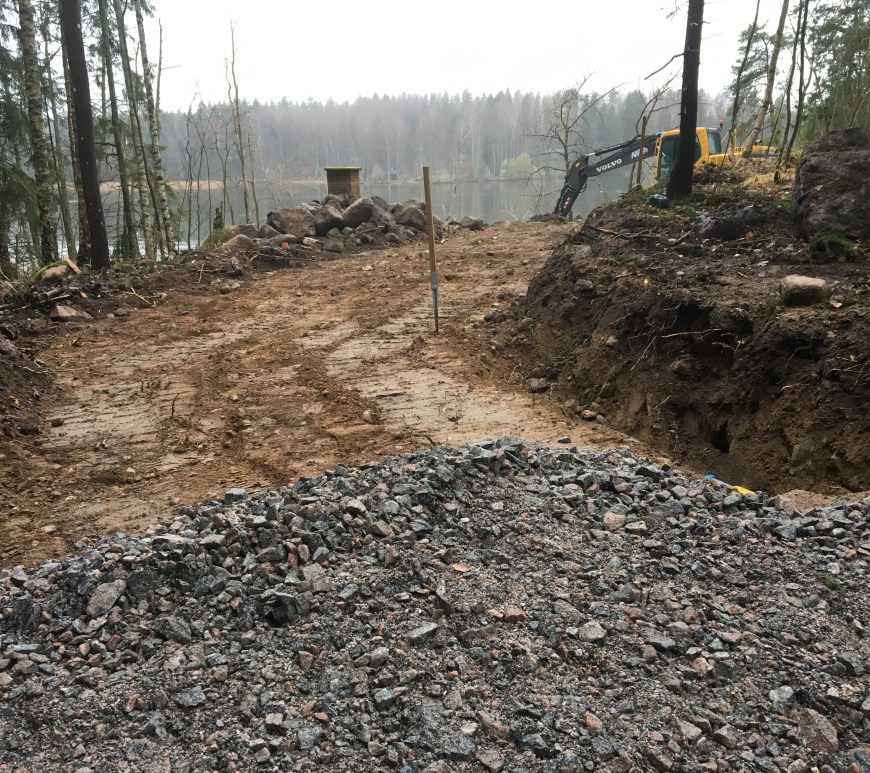 Puiden kaato tontilta kesti pari päivää, mökkitien rakentamiseen meni viikko. Maaperätutkimuksen jälkeen päästään eteenpäin rakennusluvan kanssa. Jatka artikkeliin Puiden kaato ja tien teko